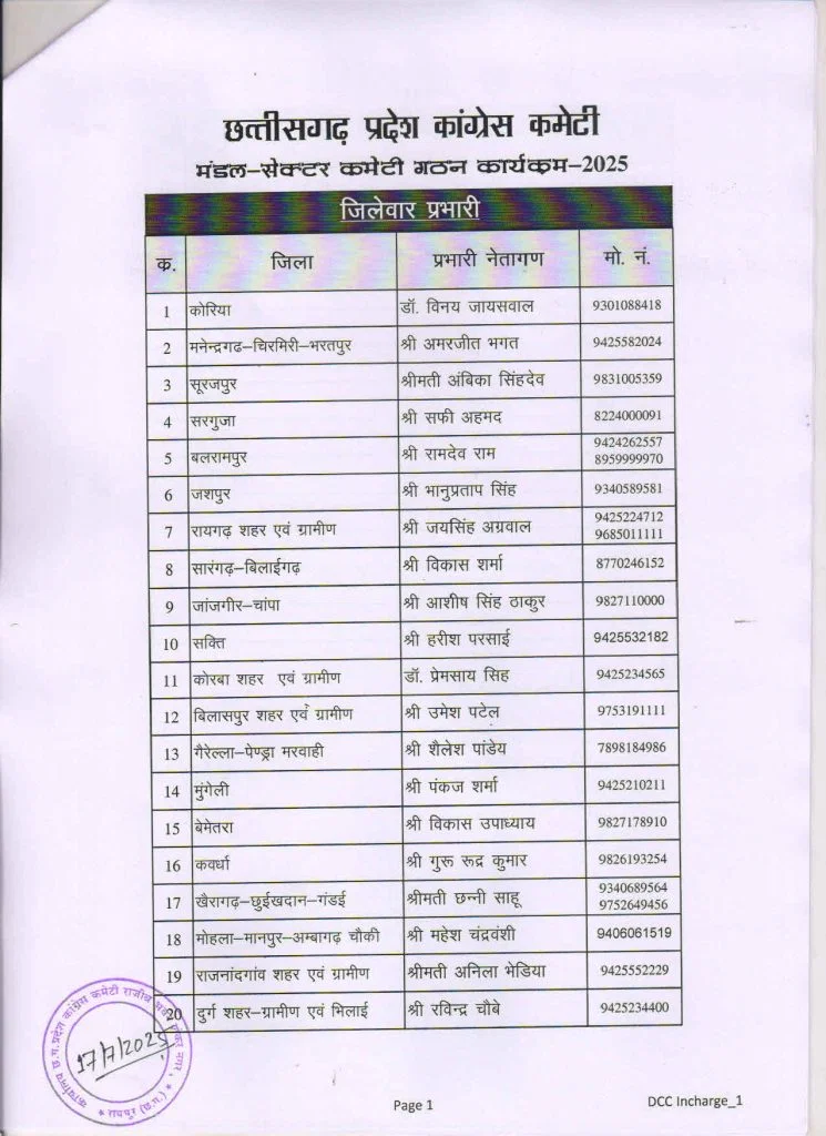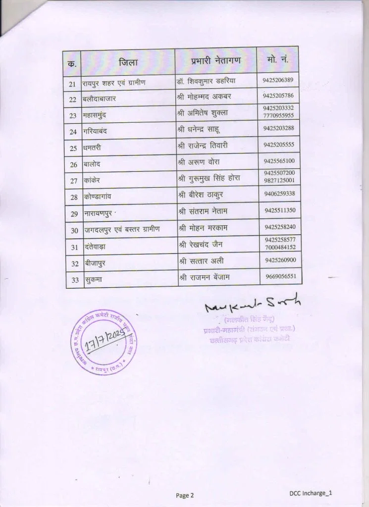Cg Breaking | Big step by Congress Committee, appointment of new in-charges for all 33 districts…