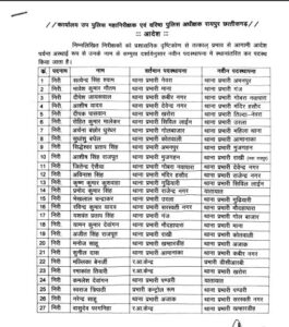 रायपुर, 3 जुलाई 2025। राजधानी रायपुर में पुलिस प्रशासनिक स्तर पर एक बड़ा बदलाव किया गया है। वरिष्ठ पुलिस अधीक्षक (SSP) लाल उमेद सिंह ने 27 थाना प्रभारियों के तबादले का आदेश जारी किया है। इस फेरबदल के तहत शहर के कई प्रमुख थानों की कमान नए अफसरों को सौंप दी गई है।