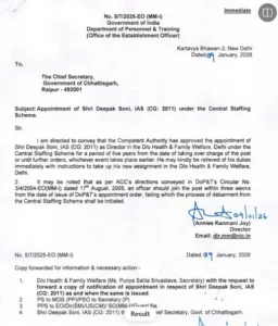 Chhattisgarh | IAS Deepak Soni becomes Director in the Centre, five years deputation