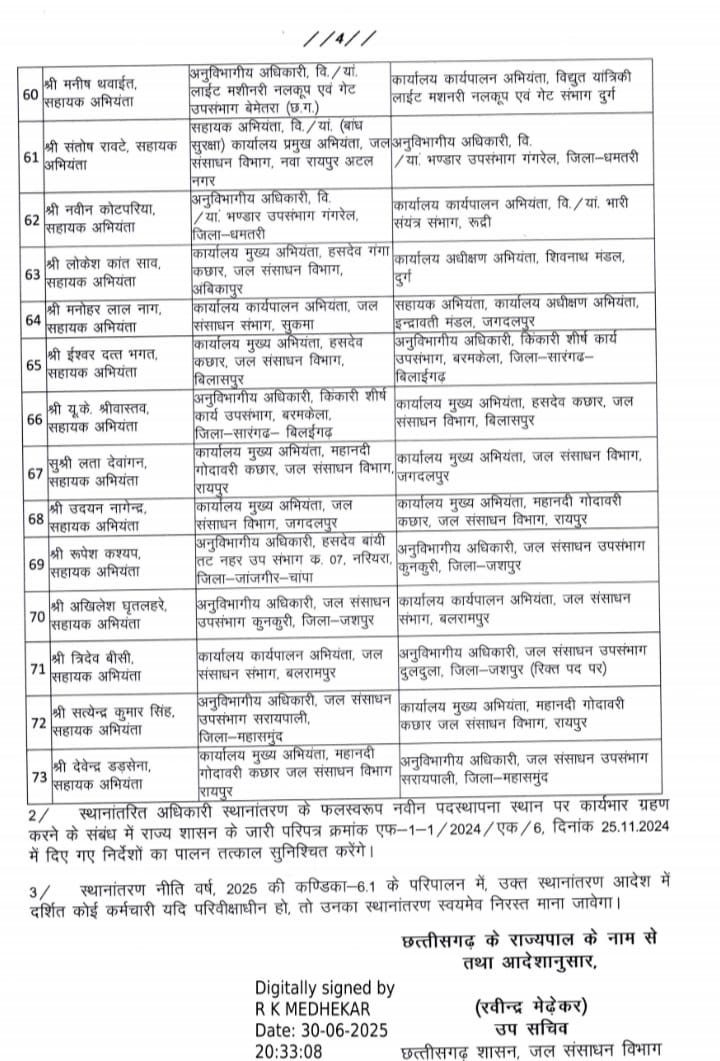 Chhattisgarh | List of transfers released in Women and Child Development Department, junior officers given charge of big posts