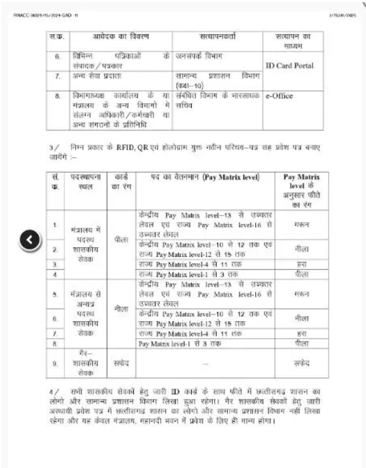 आदेश के अनुसार, भारतीय प्रशासनिक सेवा (IAS), राज्य प्रशासनिक सेवा (SAS) सहित सभी विभागों के अधिकारी, सचिवालय सेवा के कर्मचारी और मंत्रालय से जुड़े कर्मियों को नया RFID, QR और होलोग्राम युक्त परिचय पत्र जारी किया जाएगा।