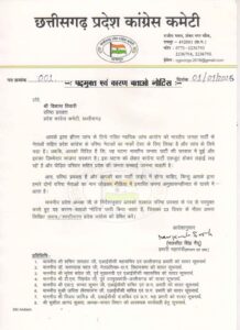 पीसीसी चीफ दीपक बैज के निर्देश पर पार्टी के प्रभारी महामंत्री मलकीत सिंह गैंदू ने आदेश जारी कर विकास तिवारी को प्रवक्ता पद से हटाते हुए कारण बताओ नोटिस थमाया है।